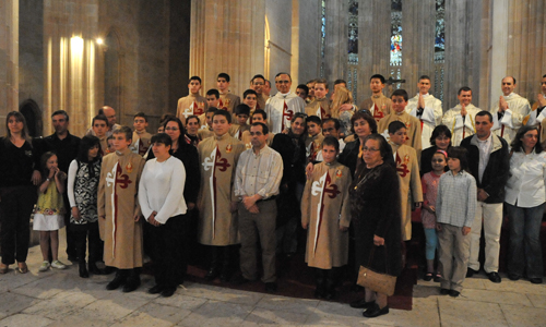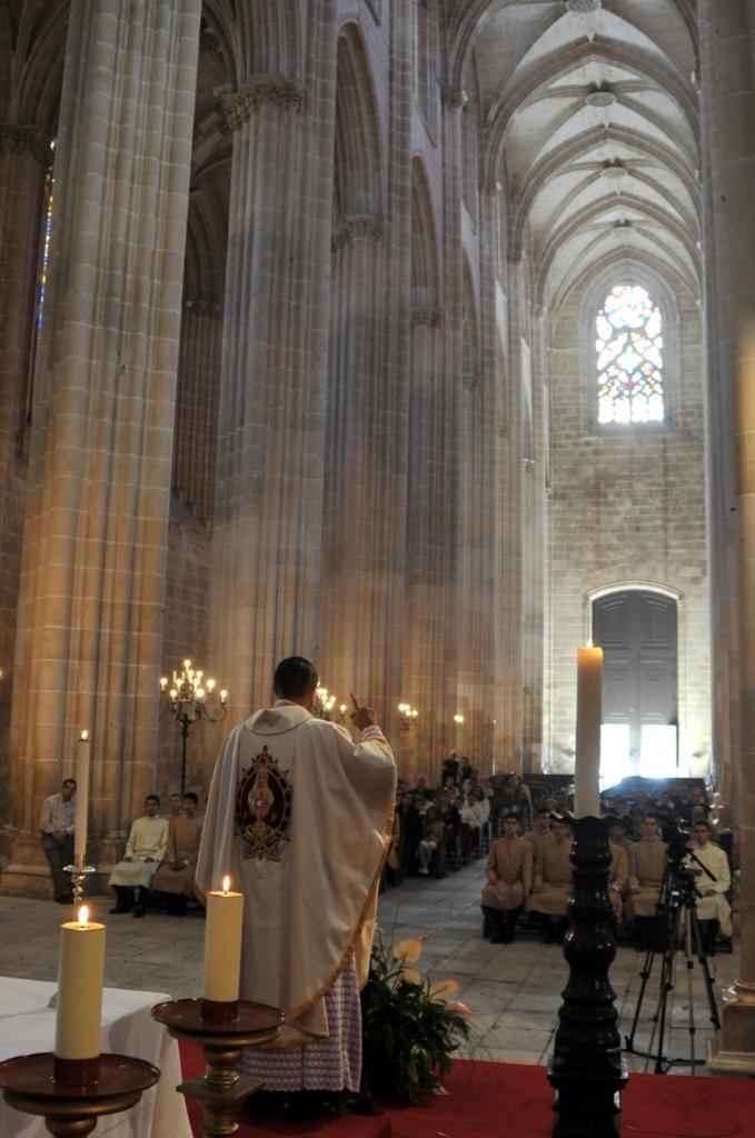 No histórico Mosteiro da Batalha, 30 jovens rejubilaram-se, juntamente com suas famílias, pela recepção do hábito dos Arautos do Evangelho, das mãos do Monsenhor João Scognamiglio Clá Dias, fundador e presidente geral da instituição.