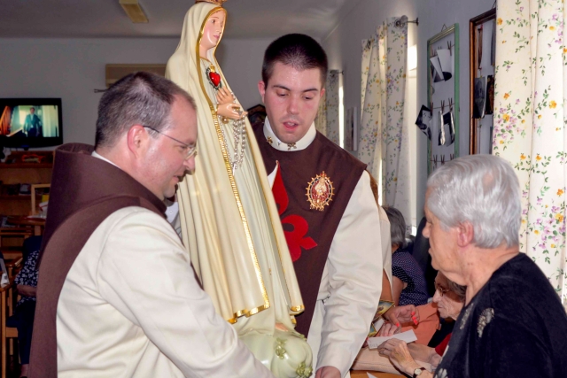 Após o almoço partilhado, os Arautos levaram a imagem peregrina à Santa Casa da Misericórdia de Alcáçovas, onde rezaram com todos os utentes. Ao final da visita foi oferecida uma pequena lembrança para cada um, e foi-lhes lembrado o pedido de Nossa Senhora em Fátima, para oferecerem tudo a Deus e rezarem o terço todos os dias.