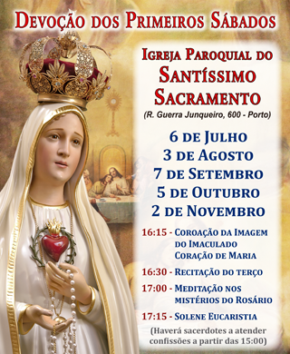 Os Arautos do Evangelho estão a promover na igreja do Ssmo Sacramento, no Porto, a prática reparadora dos Cinco Primeiros Sábados.