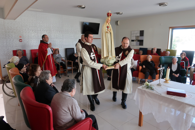 A residência sénior, Pinhal Park Residence, acolheu recentemente a visita dos Arautos do Evangelho para uma manhã de convívio e espiritualidade. O ato teve início com a celebração Eucarística presidida pelo sacerdote Arauto, Pe. Jorge Teixeira Lopes, EP. Em suas palavras o celebrante quis deixar aos utentes e a todos os que ali desempenham um inestimável trabalho, uma mensagem de esperança e fé no poder da oração. Cada utente recebeu um belo rosário e teve ainda a oportunidade de se abeirar da imagem de Nossa Senhora para uma última oração, momento de especial emoção reflectido nos sorrisos e lágrimas dos utentes e da equipa técnica.